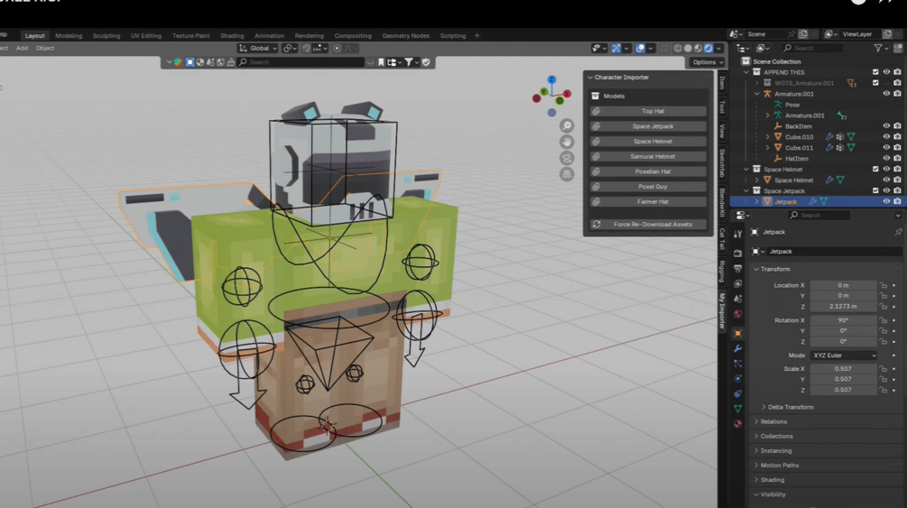 This allows you to import character models (hat and body items) to the character, with no hussle!